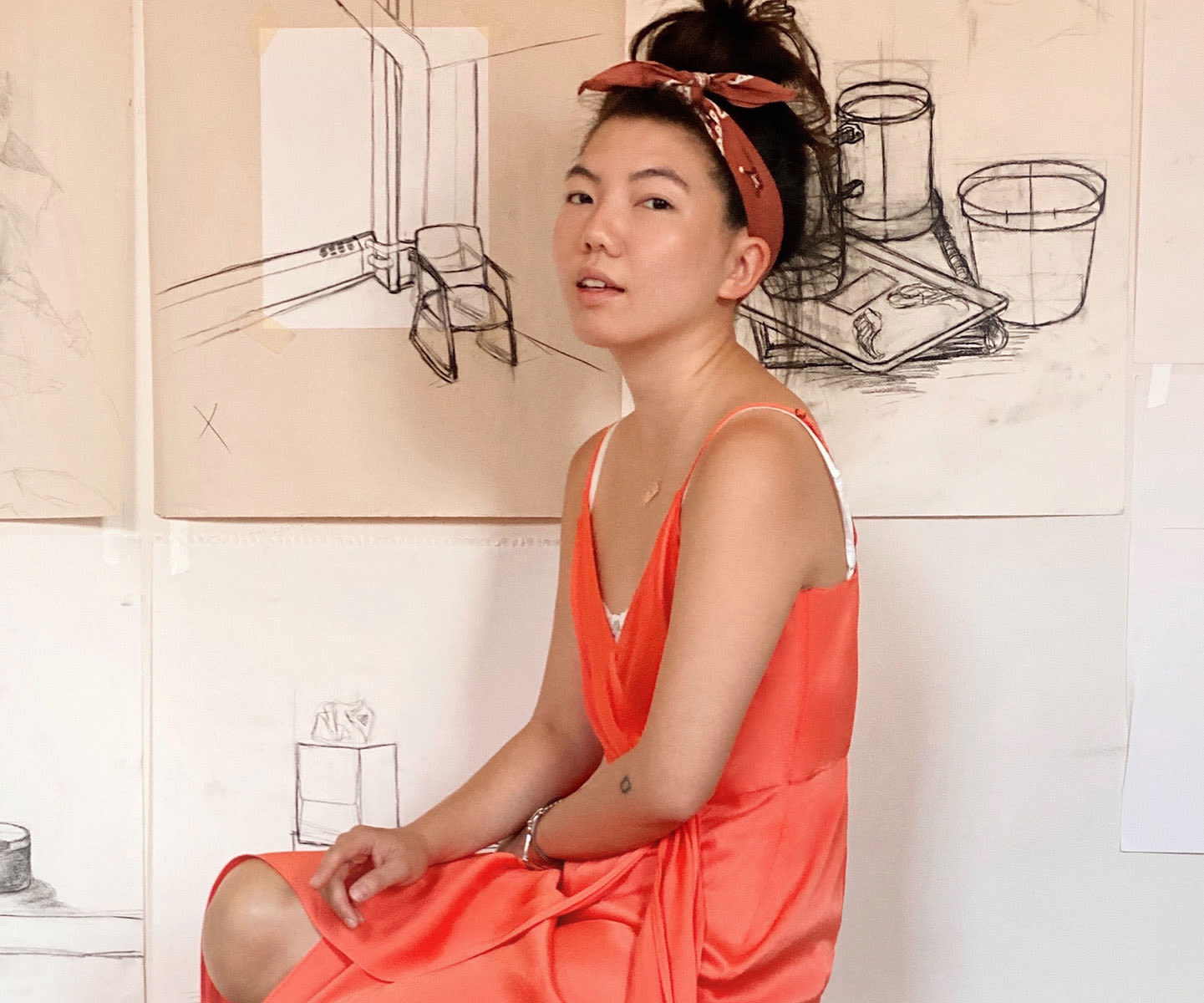 Whether you work in an AC-chilled office or are just looking to tone down a bright piece, a laidback summer sweater tied over a sleek slip dress is equal parts cool and casual. "Layers always make me feel and look more put together – even if I'm just bumming around the house," says Designer Alexis Lam. "Plus, I’m a total sucker for off-beat hues – and this tangerine orange is a stunner."