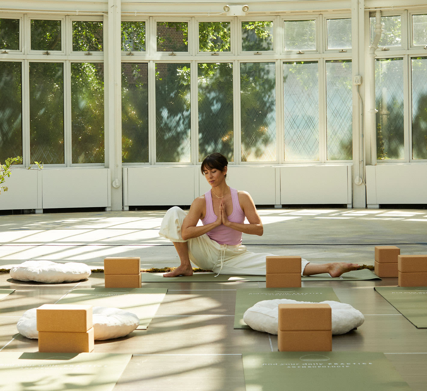Steady and grounding. That’s the presence Bonnie Crotzer exuded as she began class. Taking place at the Brooklyn Botanic Garden, the dancer, yoga instructor, and founder of The Floss (a fascia work method), curated and led a fascia-focused meditation class for ten editors to honor the power of Daily Practice, our leisurewear label. Each moment revealed a deeper connection, drawing everyone further into the experience.