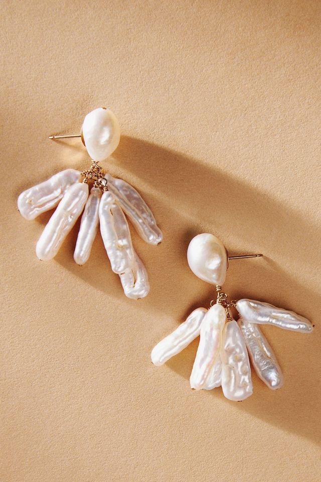 Inspired by swans, these earrings, composed of genuine freshwater pearls, gracefully sway mimicking the look of feathers.
