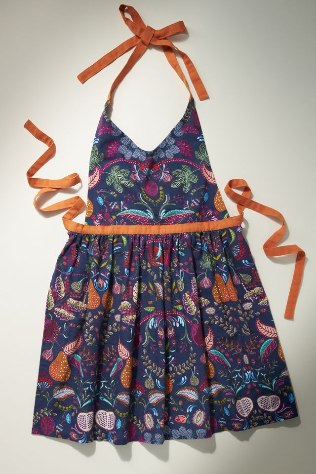 Featuring a whimsical printed floral pattern and gorgeous gem tones, this apron lends an enchanting touch to your kitchen.