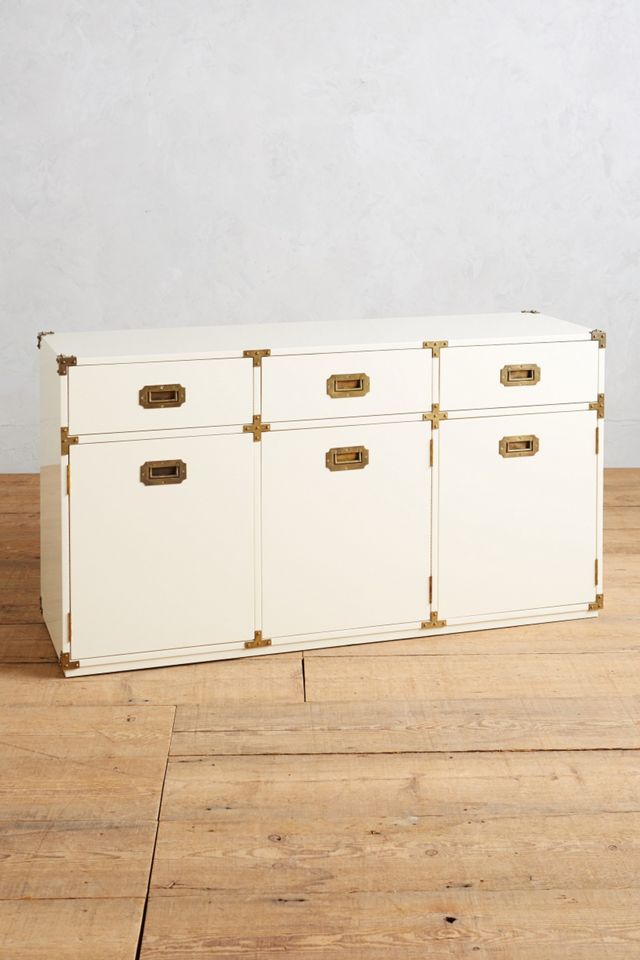 This collection nods to Italian expeditions of the past, when campaigning politicians would spend months on the road. The protective brass corners allowed the dressers to function as luggage as well as furniture, so travelers could preserve a semblance of home. The lacquered finish is the result of a five-day sanding, coating and curing process that renders the surface glossy- smooth.