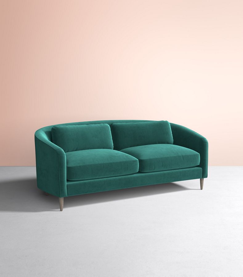 When space is at a premium, savvy seating is a must. At 83 inches in width, this charming two-seater is ideal for cozy nooks and tighter spaces - but thanks to an elegant, curved back and plush, oversized cushions, it offers comfort to spare.