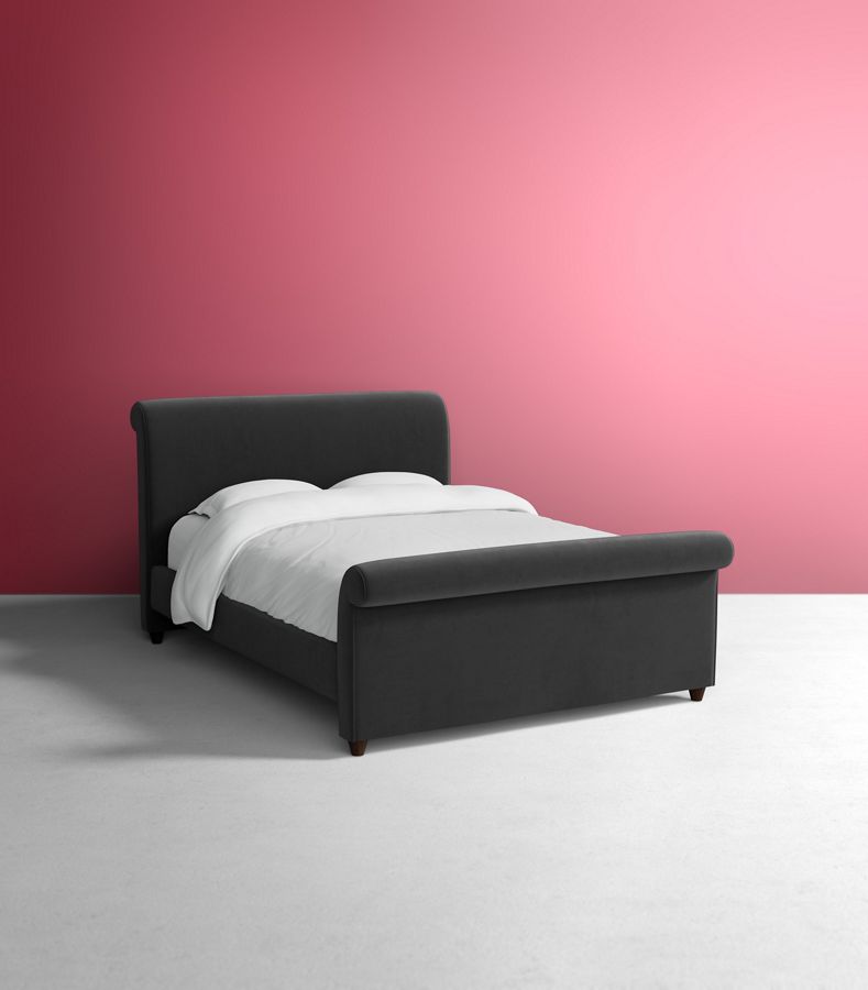 Bringing the classic lines and elegant, scrolled arms of our well-loved Willoughby Sofa into the bedroom proved a task for which our designers were particularly well-suited - its lovely head and make for a subtle, graceful take on the classic sleigh bed.