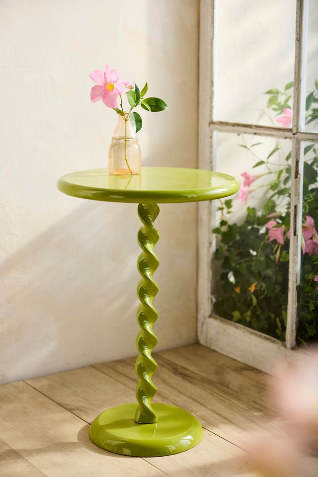 Hand-crafted especially for terrain, this cast aluminum side table can double as a plant stand around the house or on the patio. Each table features a colorful finish and a swirling pedestal base.